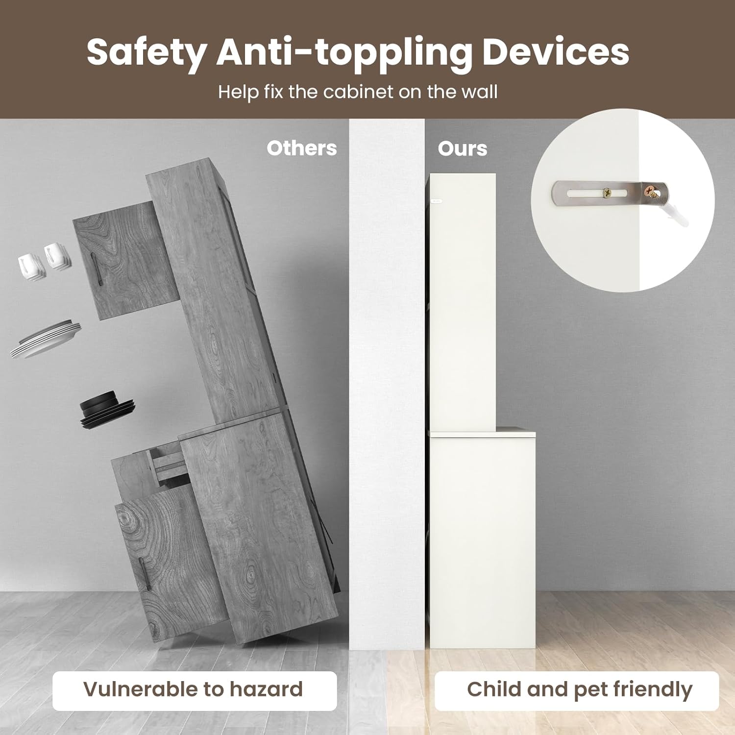 Description: Note: Please start assembly after receiving both of 2 boxes Upgrade your kitchen storage with our spacious and versatile kitchen pantry cabinet. With several open shelves, top cabinet, 39.5” wider countertop, pull-out drawer, 2-door cabinet and side cabinet all in one, you'll have ample enough storage space to neatly store your dishes, spices, small appliances, storage boxes and more. The 4 adjustable shelves allow for customizable storage, and each shelf can be adjusted to allow you to store different sizes of items, such as seasoning, tableware, appliance and bottled wine. The shelves can also be removed as per your preference. Built with reliable construction, this cabinet is made of sturdy materials, ensuring durability and long-lasting performance. It even includes a convenient built-in charging station for your devices, bringing convenience to all electronics users, eliminating the hassle of searching for outlets or dealing with tangled cords. The thoughtful details, cable holes for wire management and smooth metal slides, enhance your overall using experience. Compared with others without anti-toppling design, which is vulnerable to hazard, ours is of great safety. Its modern style effortlessly blends with various decoration, making it a versatile addition to any space in your home. Features: Extra large storage space with 9 shelves and a spacious countertop 4 adjustable shelves with 5 positions each for customizable storage 2 cable holes help to organize the wire for more convenience Smooth metal slides for effortless opening and closing of drawers Soft close hinges superior to ordinary hinge for better using experience Can be used in other spaces like the dining room or living room Modern design complements various kitchen styles and enhances home aesthetics Sturdy and durable construction for long-lasting performance Safety anti-toppling devices help fix the cabinet on the wall Easy accessibility, keeping everything within reach Specification: Color: White + Walnut Material: Engineered Wood + MDF Board Overall Dimension:39.5" x 16" x 71" (L x W x H) Top Shelf Dimension: 24" x 9.5" x 15.5" (L x W x H) Top Single Door Cabinet Dimensions: 13” x 9.5” x 15.5” (L x W x H) Countertop Dimensions: 39.5” x 15” x 19”(L x W x H) Countertop Length (inner): 37” 2-Door Cabinet Dimensions: 24” x 14” x 28”(L x W x H) Front Panel of Drawer: 12” x 6” (L x W) Internal Size of Drawer: 10” x 4” x 12” L x W x H Bottom Singe Door Cabinet Dimensions: 12” x 14” x 24.5” (L x W x H) Base Width: 15.5” Height of Upper Hutch: 39” Height from Countertop to Ground: 32” Net Weight: 123.5 lbs Weight Capacity in Total: 410 lbs 2 USB Ports: 5V/2.1A 2 AC Outlets: 125V/12A Length of Power Cord: 6.6 ft Package Includes: 1 x Kitchen Pantry Cabinet 1 x Instruction