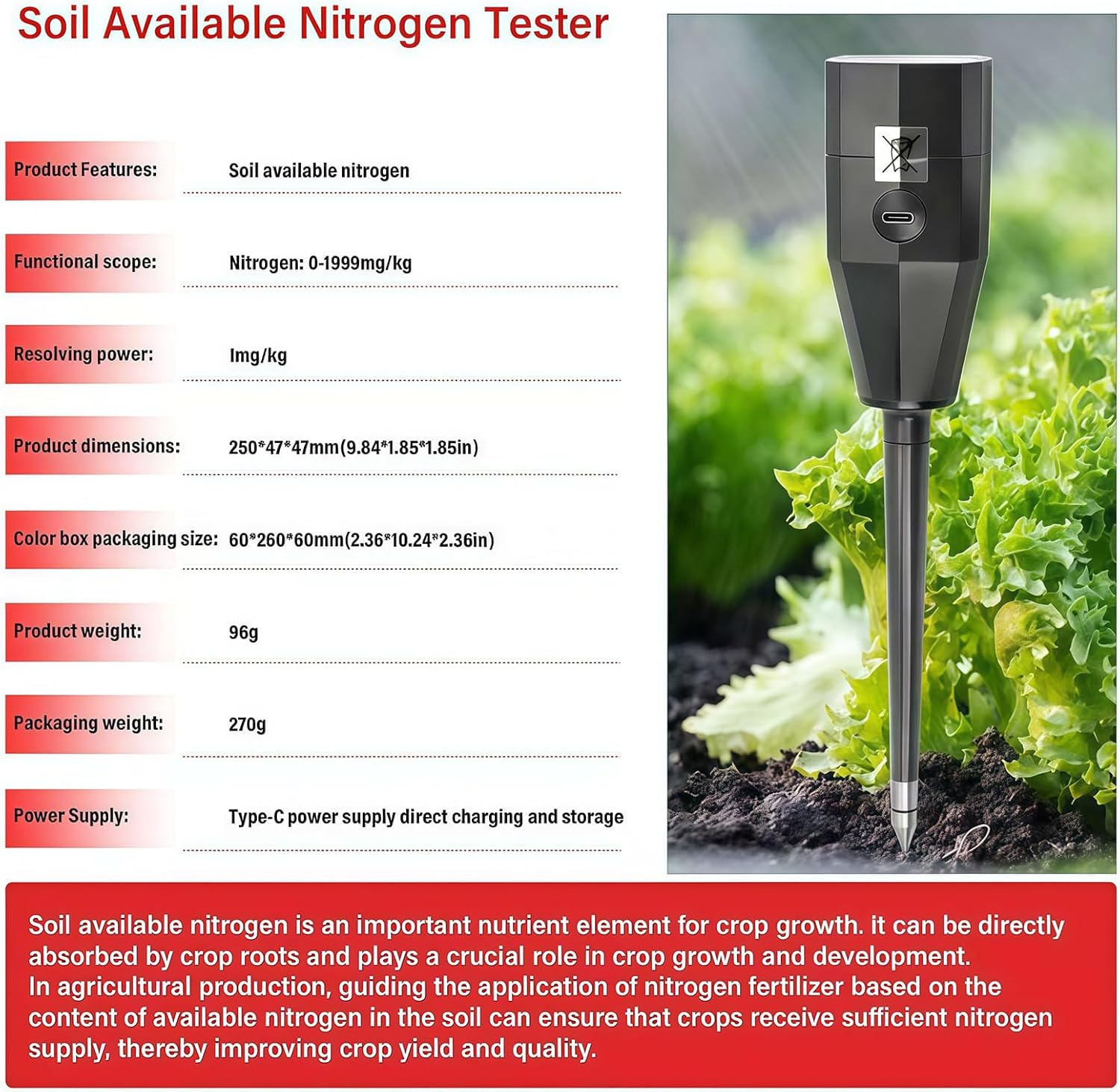 Features: This USB rechargeable soil NPK tester accurately measures potassium levels with an error margin of less than ±5%, enabling users to optimize fertilization strategies and boosting crop yields efficiently. Featuring a ABS body and a USB rechargeable battery that provides up to 8hours of continuous use after a 1hour charging, this portable soil analyzers offer quick results within 10seconds through simple button operate. Designed for gardening enthusiasts, professional farmers, beginners, this soil nutrient detector reduces learning curves with its user friendly interfaces, making it accessible for all skill levels in agricultural setting. Ideal for home gardening, small farms, outdoor activity, and travel, this portable soil analyzers maintains high sensitivity across various soil types, ensuring reliability performances in diverse environments. With its built in high sensitivity sensors, this soil NPK tester delivers consistent accuracy for scientific research and agricultural management, providing essential data to enhances soil health and productivity. Specifications: Component: ABS Size:Approx.250x47x47mm/9.84x1.85x1.85inch 3Option Type Measuring ranges:0-1999mg/kg Battery capacity:500mAh Type C Charging Port; Charging time:1hour; Usage scenarios: home gardening,agricultural production,school experiments; Note: Please allow 1-3cm errors due to manual measurement. Due to the differences between different monitors, the picture may not reflect the actual item color. Package includes: 1pc Soil Tester
