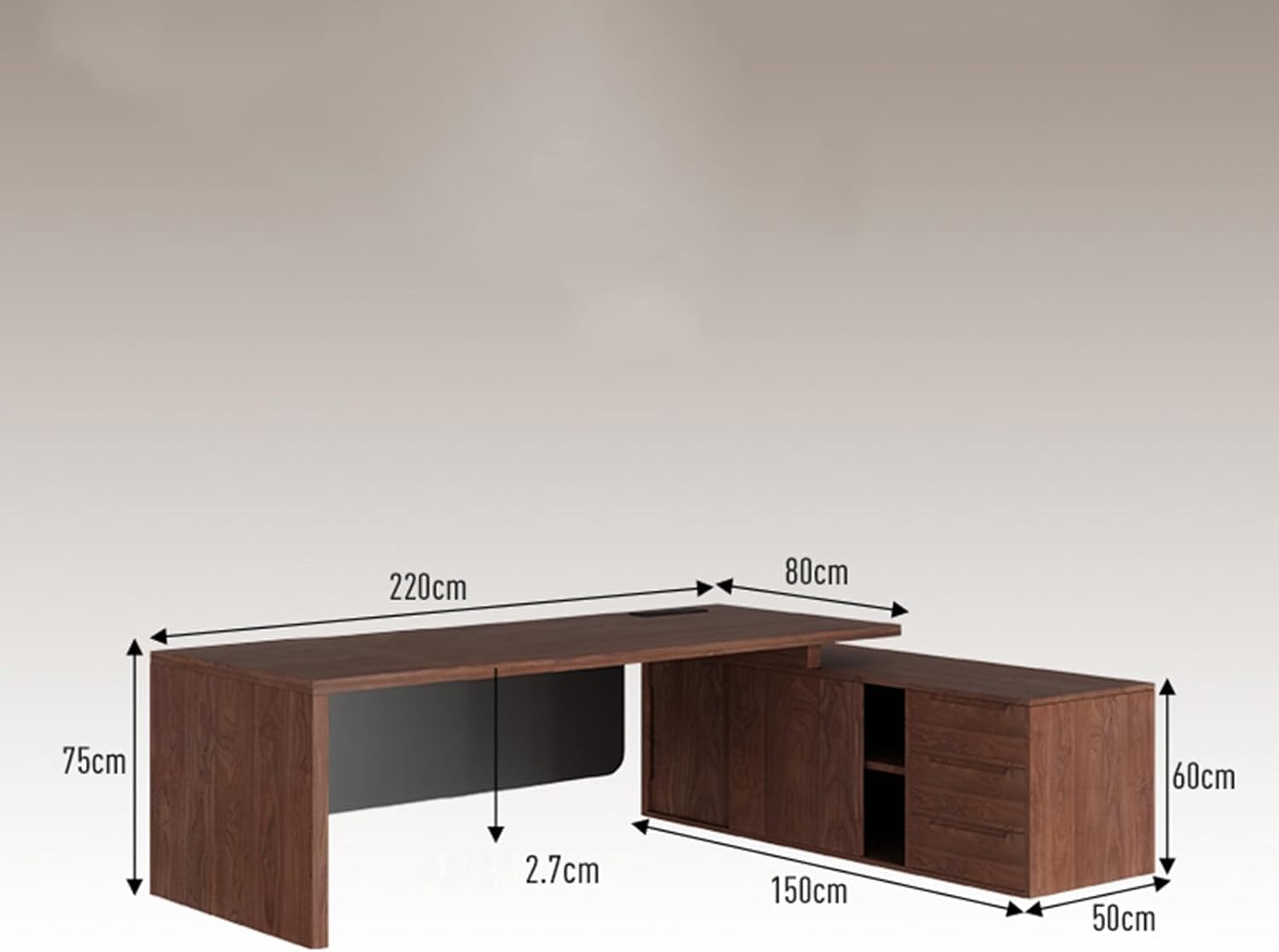 Product Dimensions: 94"L x 63" W x 29.5"HColor: BrownStyle: ModernBase Material: Wooden LegsTop Material Type: WoodFinish Type: WoodSpecial Feature: L-ShapedRoom Type: Office, Bedroom, Study RoomRecommended Uses for Product: WorkingPackage List:Executive Desk x1Installation Accessories x1