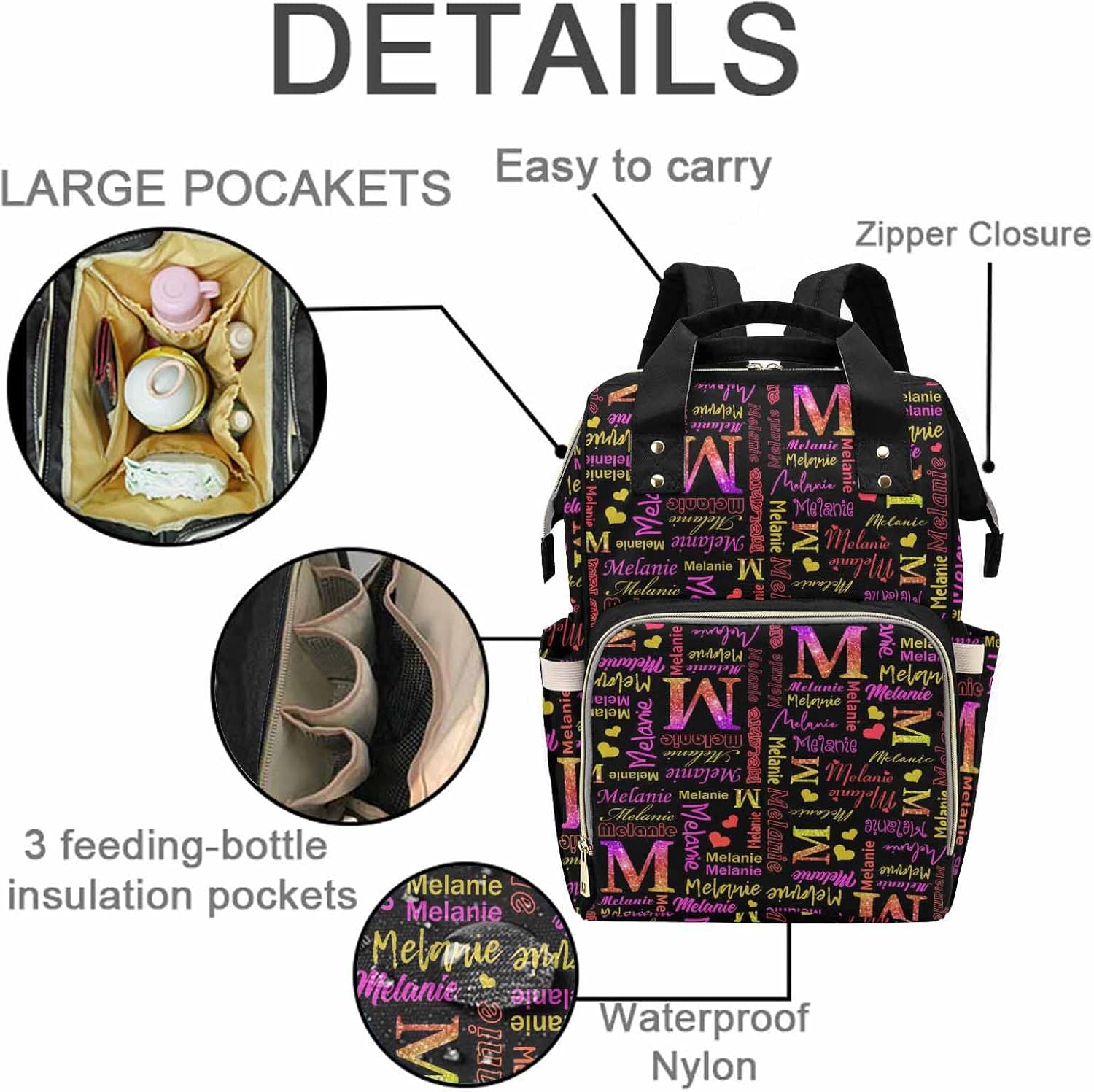 Functional hands-free diaper bag backpack for parents! The front compartment of the backpack diaper bag includes 3 separate insulated pockets that can hold 3 bottles. Features mesh fabric pockets to hold snacks and pacifiers. The main compartment has three large pockets and two small pockets that can put diapers, milk that hasn't been drunk yet, and a laundry, and the middle beating capacity can put down a large insulated cup, which can put some food that needs to be insulated. Diaper bag waterproof pocket, you can put your clothes, diapers, and even soiled pants into the pocket, which is waterproof material. Diaper storage bag can hold 4-5 diapers, you can quickly grab the diapers from the pocket. Cute Christmas elements, so you can have one more decoration to decorate your holiday Back padding and adjustable shoulder straps bring ultimate comfort and stability to keep you comfortable Easy to carry, making your travel more convenient.