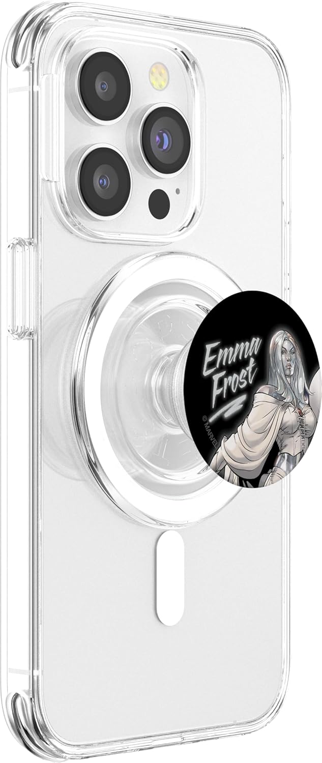 Strengthen your style with Emma Frost in her dazzling diamond form on this X-Men phone stand. Featuring a fierce illustration of the White Queen, one of the most powerful mutant telepaths in the Marvel Universe, this Emma Frost phone holder makes a bold addition to your device. Stick this pop up grip to the back of your device and use it as a handle when taking selfies or a stand for watching videos.