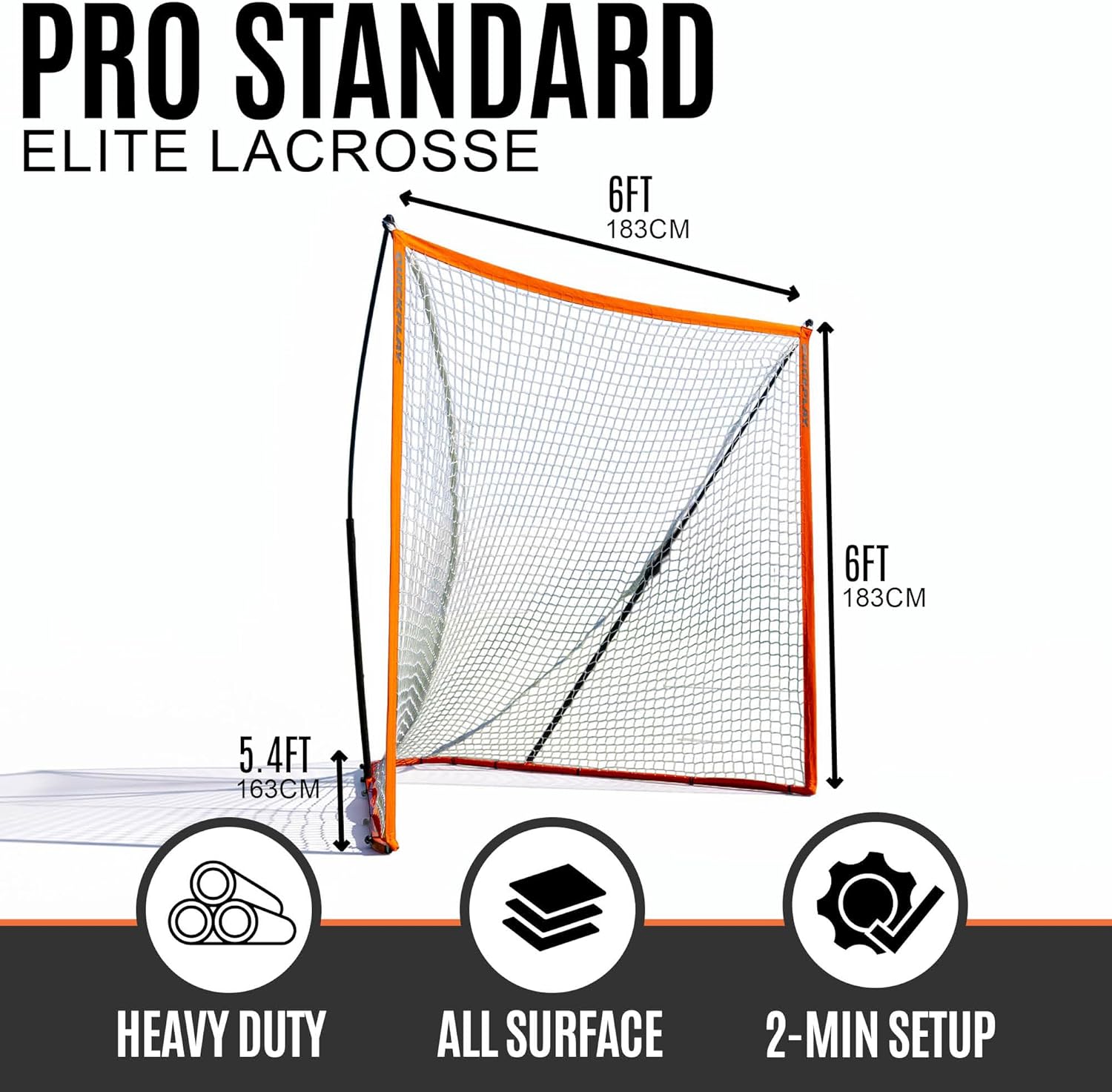 A regulation lacrosse goal that sets up fast and performs under pressure. The RIPSHOT Flexi Lacrosse Goal 6x6ft delivers official-size performance in a portable design that saves time without sacrificing durability. Built for players and coaches who want a true lacrosse goal without hauling a heavy fixed frame, it pops up in about 80 seconds and packs away cleanly after use. Whether you are running team sessions, boys or girls lacrosse practice, or backyard shooting drills with lacrosse balls, this goal provides a reliable target that holds its shape. The strong 1in x 1in steel box section base, combined with steel and reinforced fiberglass uprights, creates a stable structure that withstands repeated impact. The ultra durable 8 ply lacrosse net with 3mm twine thickness is designed for high volume shooting and competitive training. As a portable backyard lacrosse goal, it works equally well on grass fields, turf and hard surfaces. Anchor pegs provide additional security on natural grass when needed. The regulation 6 x 6ft size makes it suitable for youth programs, club sessions and competitive girls lacrosse and boys lacrosse development. When practice ends, everything packs into the included carry bag for easy transport and storage. If you need lacrosse nets for backyard use or structured team training, the Ripshot Flexi Lacrosse Goal combines fast setup, strong materials and dependable performance.