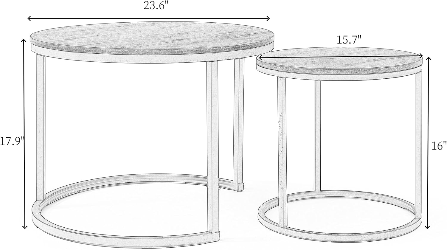 • Versatile Design: This nesting coffee table set includes two tables—a large (Φ 23.6 × 17.9 inch) and a small (Φ 15.7 × 16 inch)—that can be used together or individually, offering flexibility for any space.