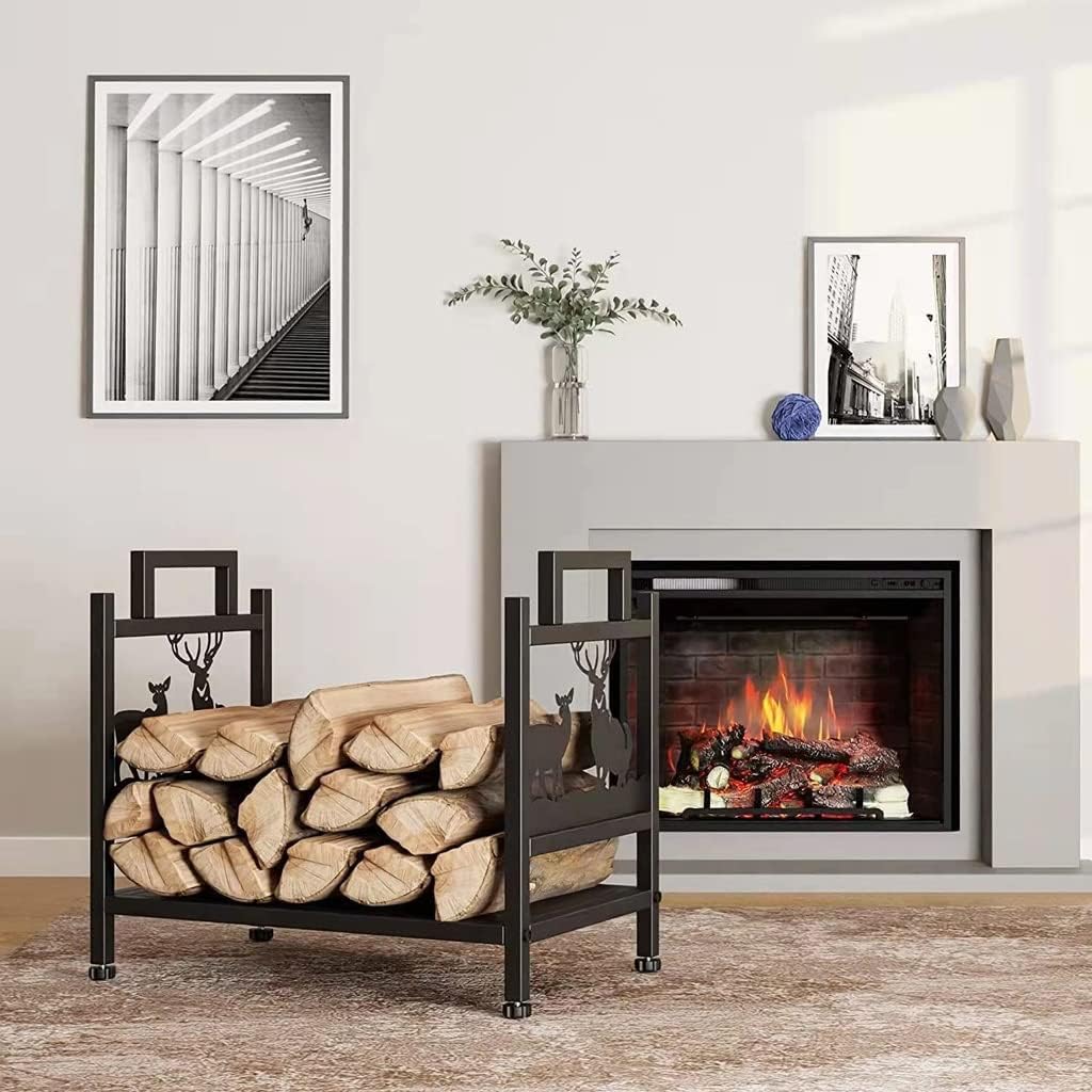 Product Name. Firewood Storage Rack Product Material: Iron Colour: Black Product Size: 43cm*30cm*43cm Assembling method: Assembled Product can hold weight: 30kg-70kg Product Usage. Firewood storage, storage and safekeeping, multiple uses. Large capacity: large load-bearing shelf, perfect size to store more wood. Ideal for placing more logs next to your fireplace. The design without raised edges is perfect for placing any size of firewood. Durable & anti-friction: scratch-resistant metal iron material for more durability & load-bearing iron shelves, easy to clean and durable. Easy to use: The removable metal shelf makes carrying more logs easy and comfortable. It keeps logs arranged neatly and tightly. Convenient storage of logs with ease and comfort. Multiple uses: as a wood carrier for firewood racks, keep wood chips on top and off the ground for fireplaces, barbecues and almost anything about the outdoors. Great as a firewood storage rack to collect garden tools, picnic or camping accessories, or for home decorations. Reminder. Please excuse the slight difference due to different monitor resolutions! Manual measurement, 1cm-2cm error is normal, hope to understand.